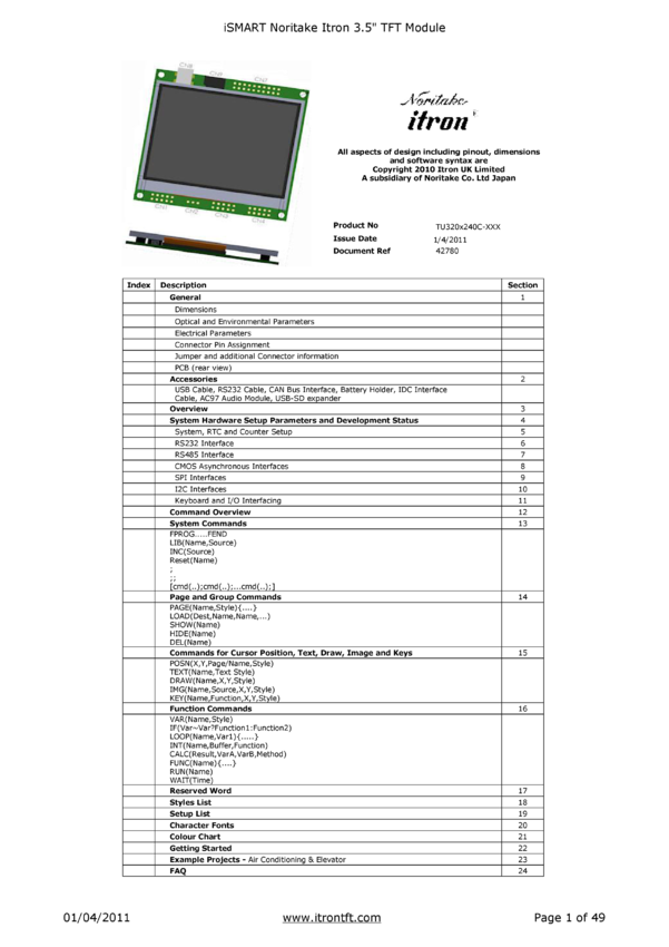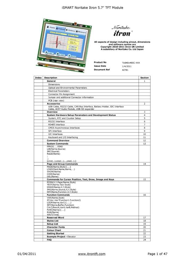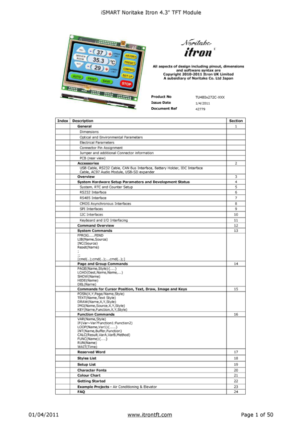 Moduł 4.3" iSMART TFT, touchpanel, procesor ARM 9, 128MB pamięci Flash, RS-232