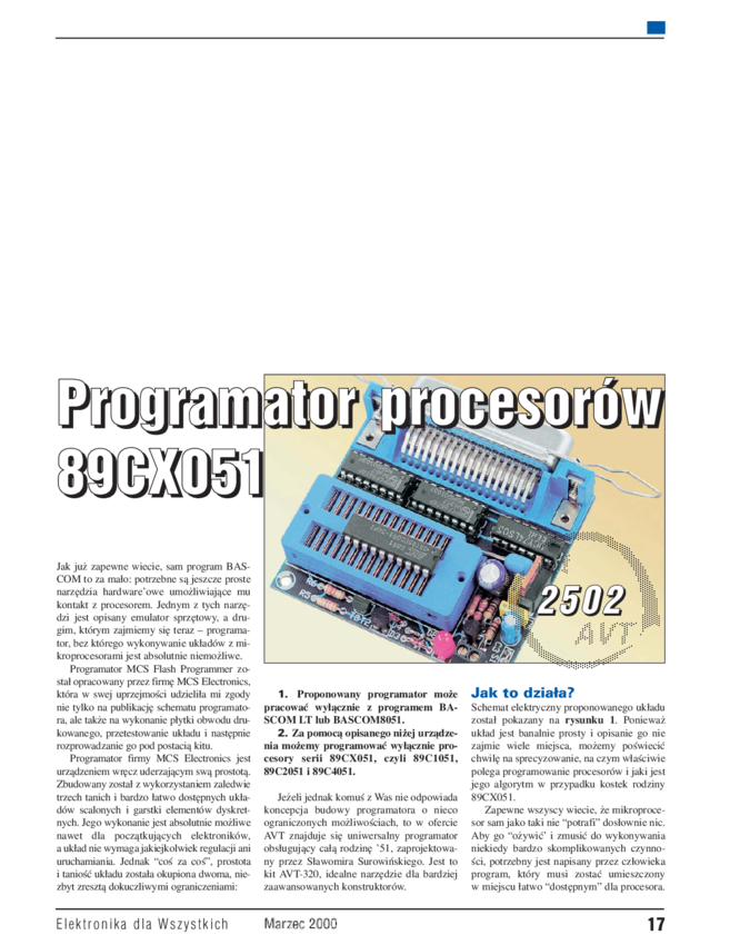 AVT854 A Zestaw uruchomieniowy dla procesorów 89CX051 i AVR - płytka drukowana