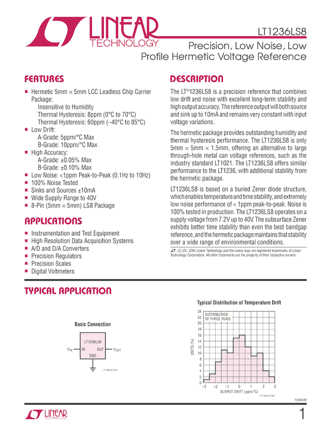 Precision, Low Noise, Low Profile Hermetic Voltage Reference
