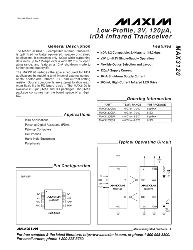 MAX3120 Low-Profile 3V, 120µA IrDA Infrared Transceiver