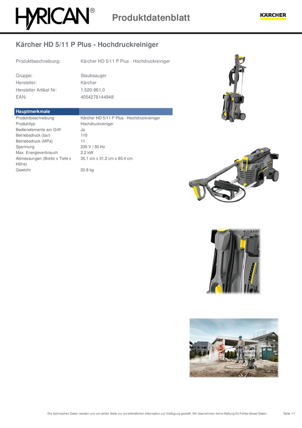 Kärcher Professional HD 5/11 P Plus Myjka ciśnieniowa 110 bar