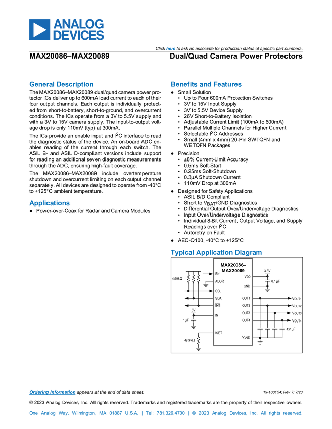 MAX14571, MAX14572, MAX14573 Adjustable Overvoltage and Overcurrent Protectors with High Accuracy