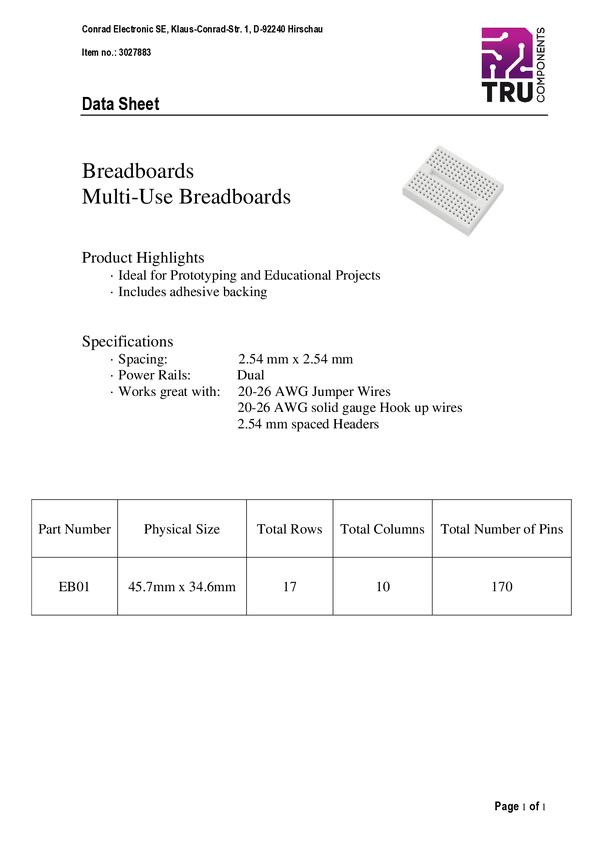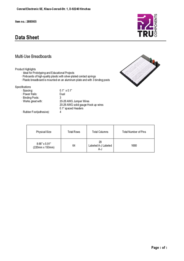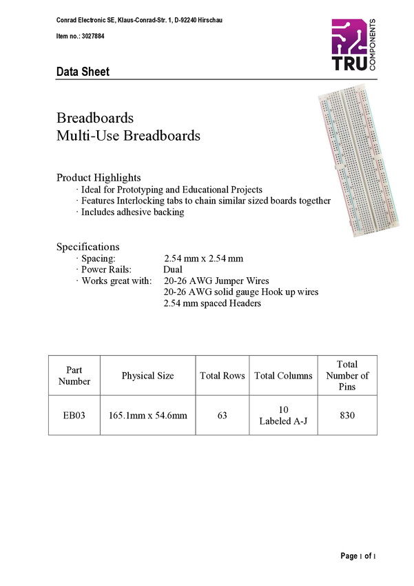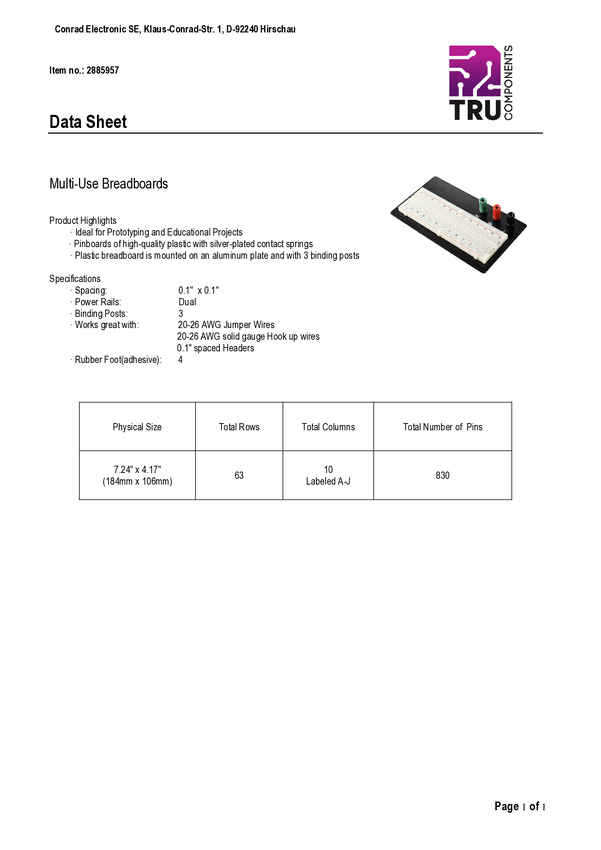 Płytka stykowa prototypowa TRU COMPONENTS TC-11543828 Ilość pinów 830 1 szt.