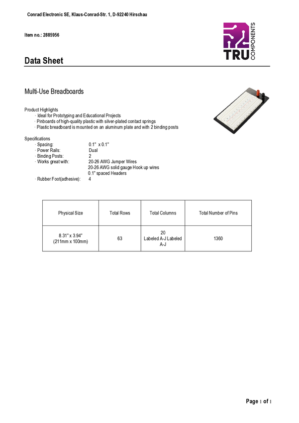 Płytka stykowa prototypowa TRU COMPONENTS TC-11543824 Ilość pinów 1360 1 szt.
