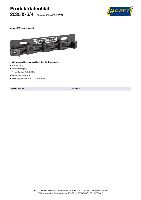 Hazet 2025X-6/4 szyna prowadząca 1 szt.