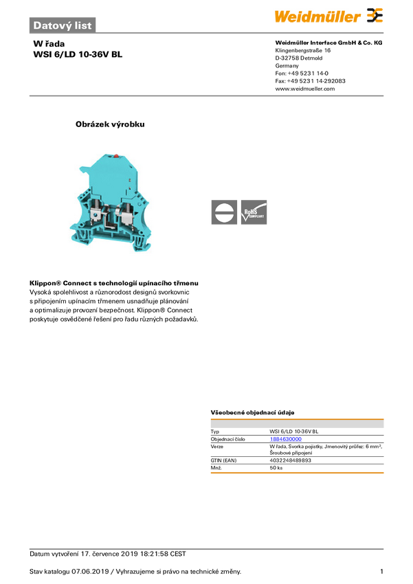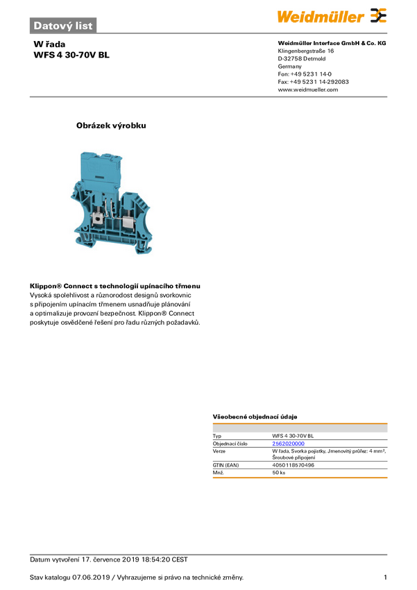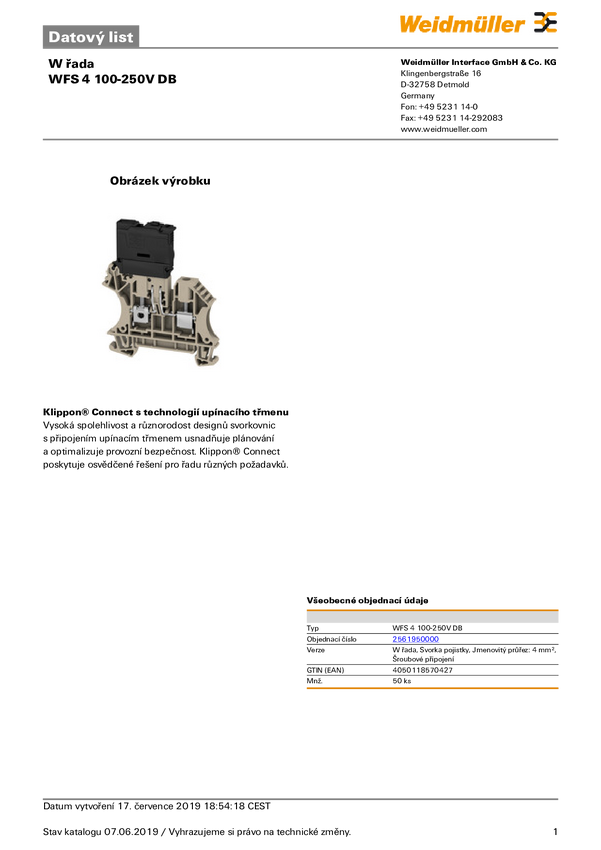 Zacisk prowadzący bezpiecznika Weidmüller 2581790000 zacisk push-in 50 szt.