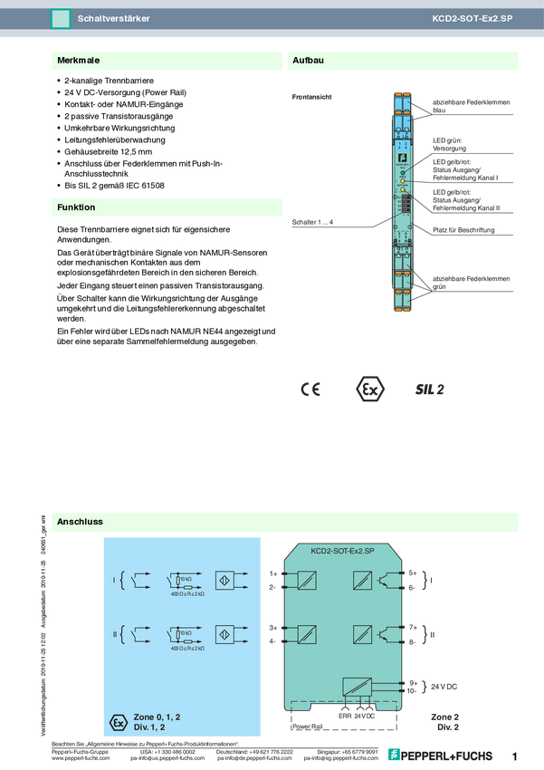 Pepperl+Fuchs KCD2-SON-Ex1 214242 Wzmacniacz przełączający 1 szt.
