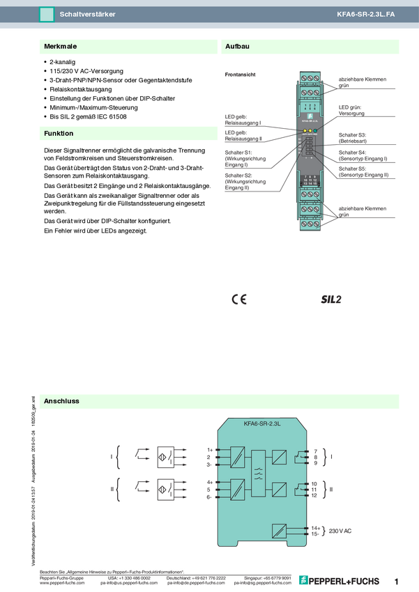 Pepperl+Fuchs KFA6-SR-2.3L.FA 182509 Wzmacniacz przełączający 1 szt.