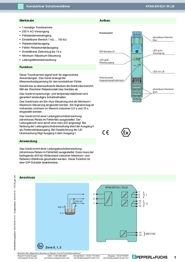 Pepperl+Fuchs KFA6-ER-Ex1.W.LB 115163 Wzmacniacz przełączający 1 szt.