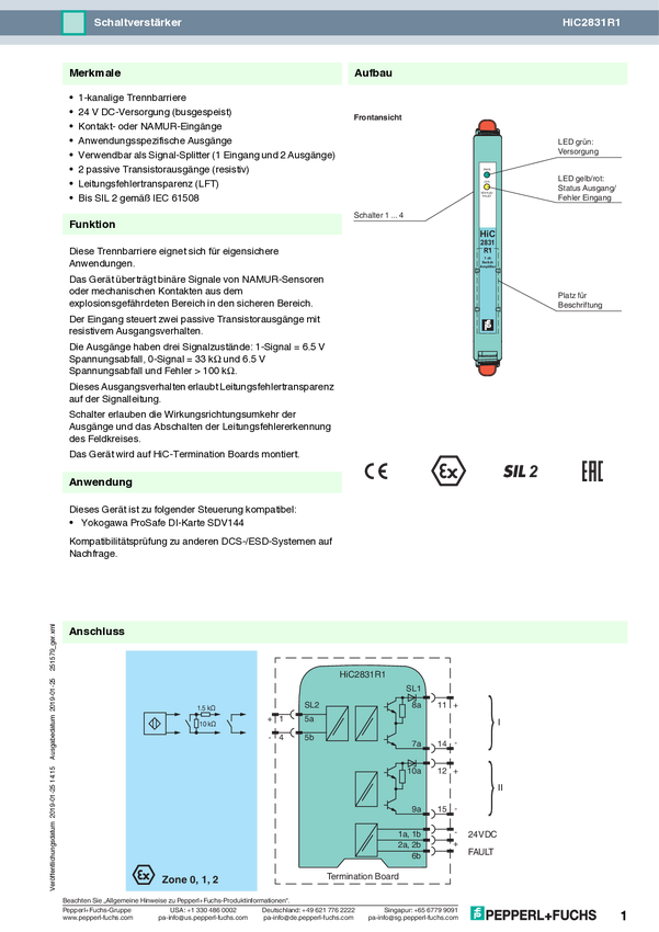 Wzmacniacz przełączający Pepperl & Fuchs HiC2831R1 Pepperl+Fuchs 251579 1 szt.