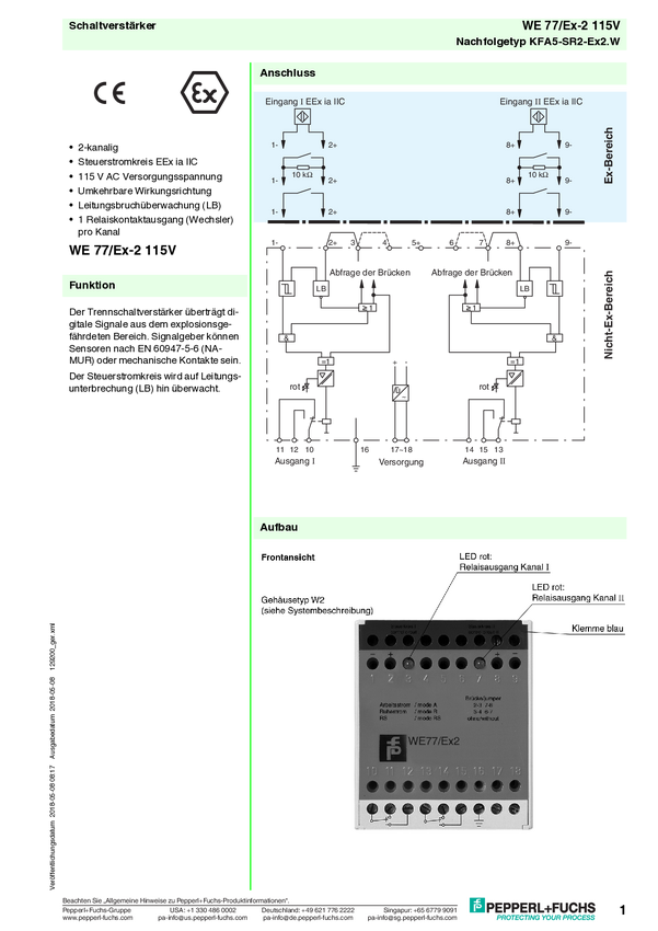 Pepperl+Fuchs WE 77/Ex-2 115V 129200 Wzmacniacz przełączający 1 szt.