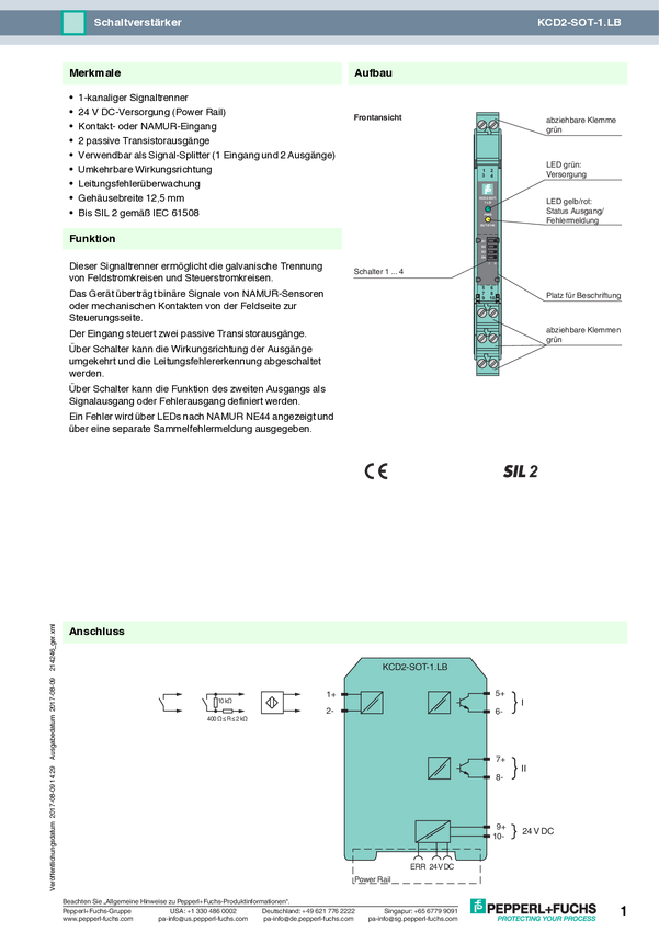Pepperl+Fuchs KCD2-SOT-1.LB 214246 Wzmacniacz przełączający 1 szt.