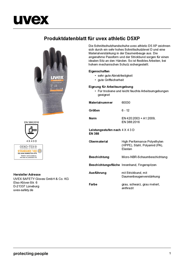 uvex 6038 6003006 Rękawice chroniące przed przecięciem Rozmiar rękawic: 6 EN 388:2016 1 par(a)