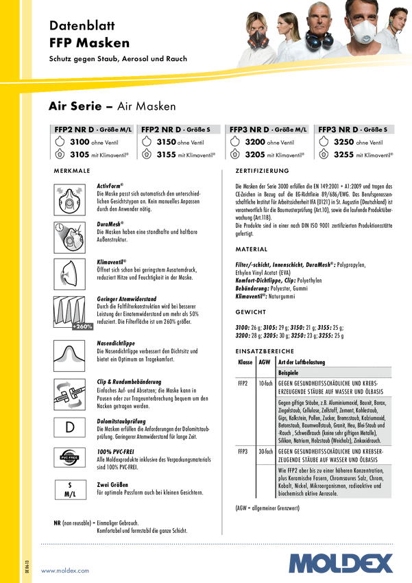 Moldex Air 320501 Maska przeciwpyłowa z wywietrznikiem FFP3 D 10 szt. EN 149:2001, EN 149:2009 DIN 149:2001, DIN 149:200