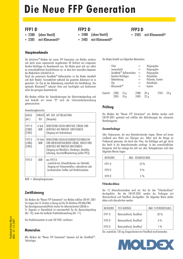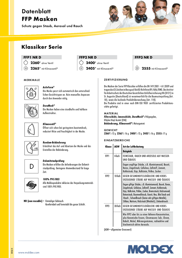 Moldex Klassiker 255501 Maska przeciwpyłowa z wywietrznikiem FFP3 D 20 szt. EN 149:2001, EN 149:2009 DIN 149:2001, DIN 1