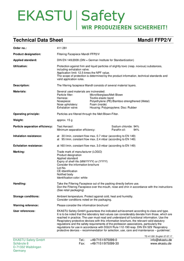 Ekastu Mandil Soft V 412 084 Maska przeciwpyłowa z wywietrznikiem FFP2 5 szt.