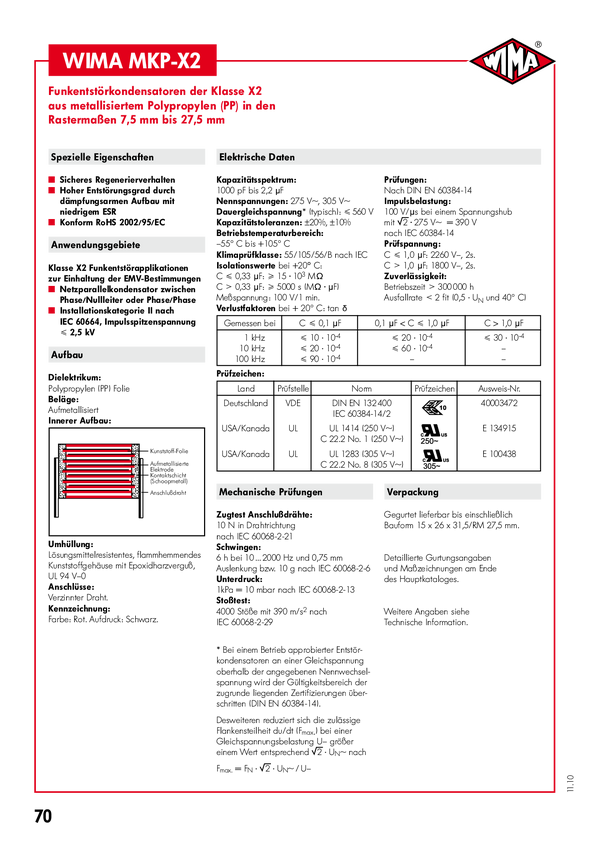 Kondensator przeciwzakłóceniowy MKP-X2 Wima MKP-X2 10uF 10% 305V RM 37,5 MKX2AW51007H00KSSD, 1 szt.