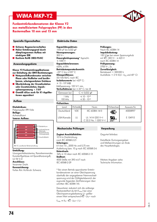 Wima MPY20W2100FC00MSSD-1 Kondensator przeciwzakłóceniowy MP3-Y2 radialny THD 0.01 µF 250 V/AC 20 % 1 szt.