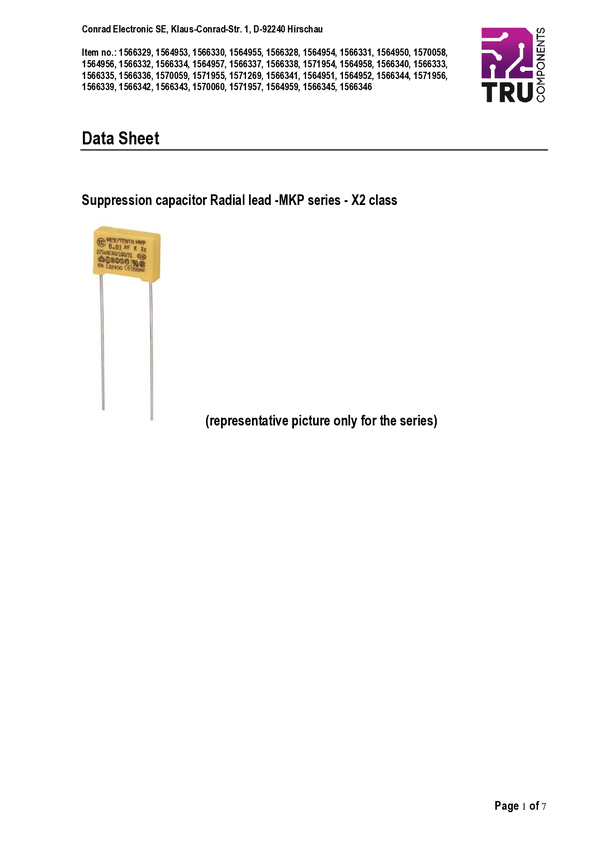 TRU COMPONENTS 450225 10 % 275 V/AC Kondensator przeciwzakłóceniowy MKP-X2 1 szt.