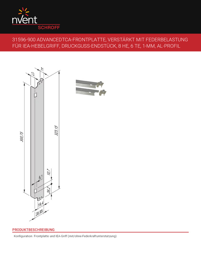 Płytka przednia nVent SCHROFF 31596899 31596899, 1 szt.