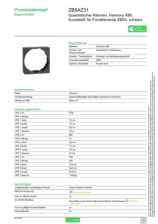 nVent SCHROFF 34571609 Płytka przednia 1 szt.