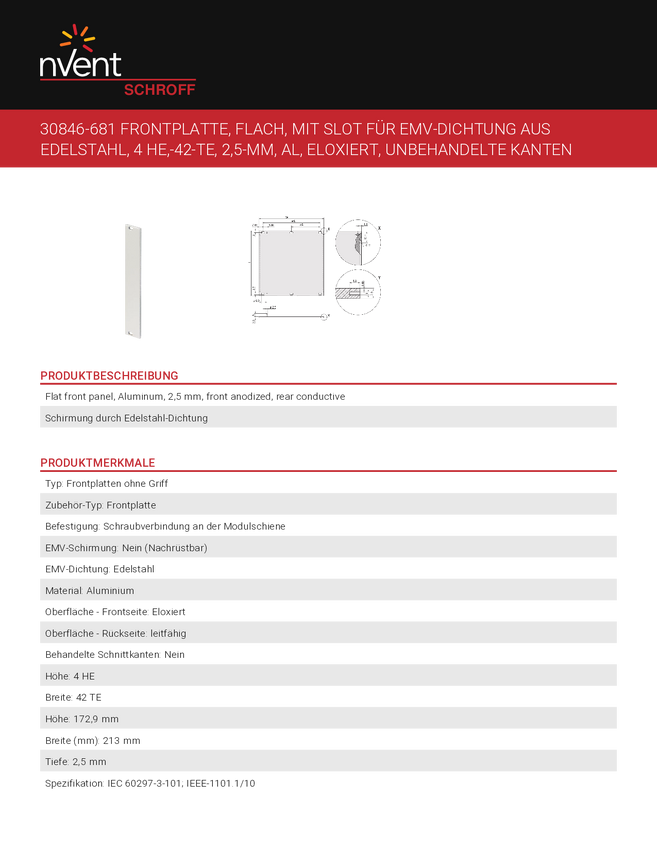 nVent SCHROFF 30846681 Płytka przednia 1 szt.