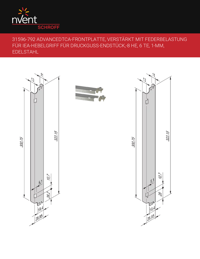 Płytka przednia nVent SCHROFF 31596792 31596792, 1 szt.