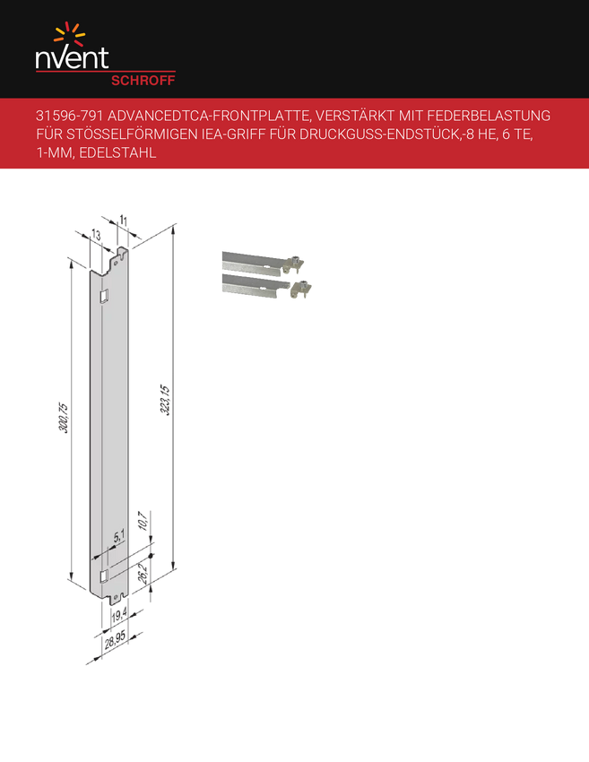 Płytka przednia nVent SCHROFF 31596791 31596791, 1 szt.