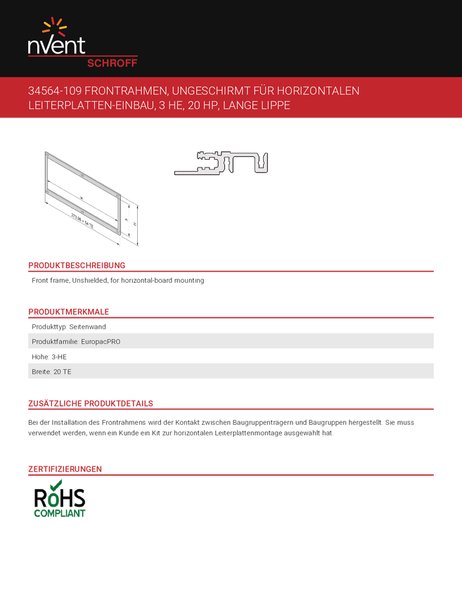 Rama przednia nVent SCHROFF 34564109 34564109, 1 szt.