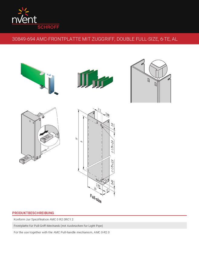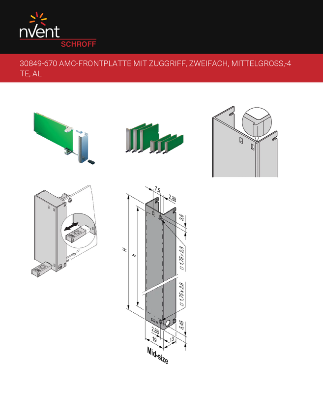 Płytka przednia nVent SCHROFF 30849407 30849407, 1 szt.