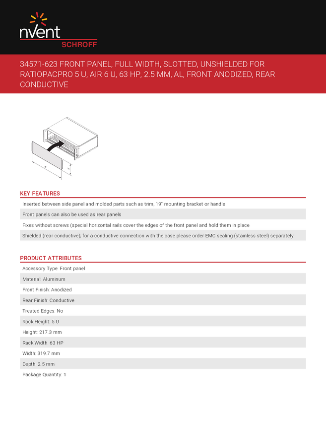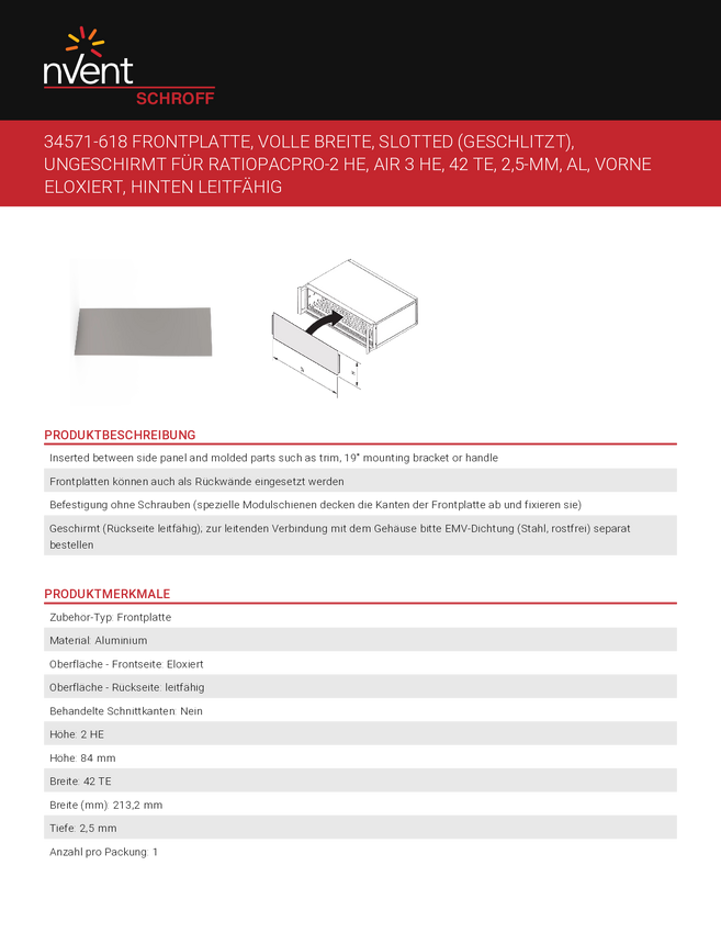 Płytka przednia nVent SCHROFF 34571623 34571623, 1 szt.