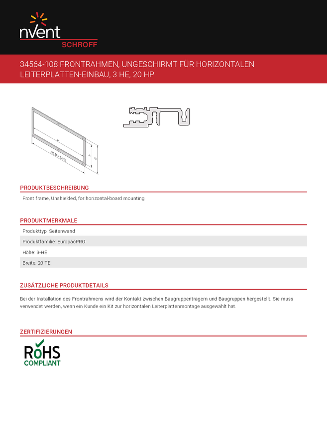 Rama przednia nVent SCHROFF 34564208 34564208, 1 szt.