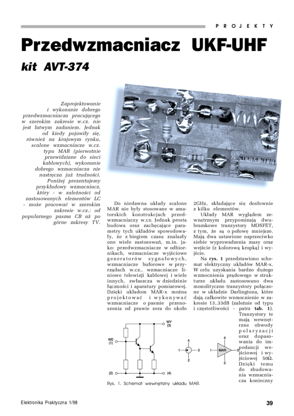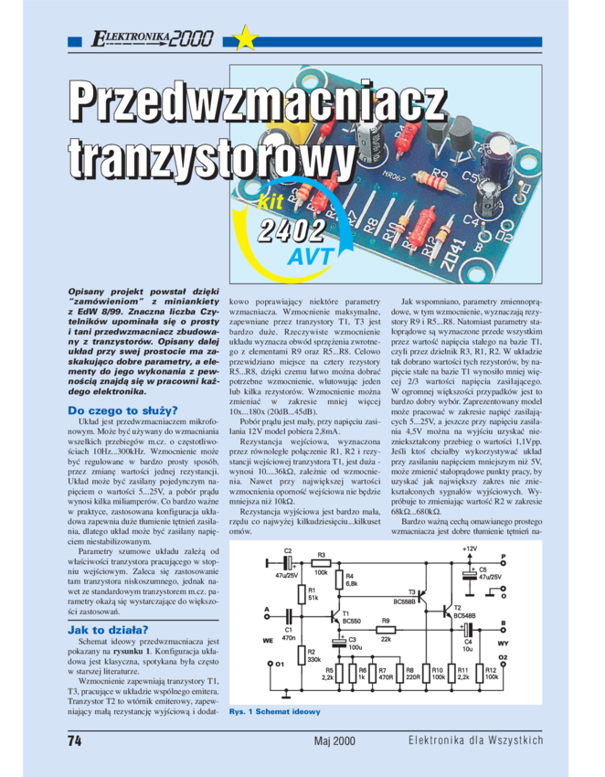 AVT1837 Przedwzmacniacz do mikrofonu piezoelektrycznego