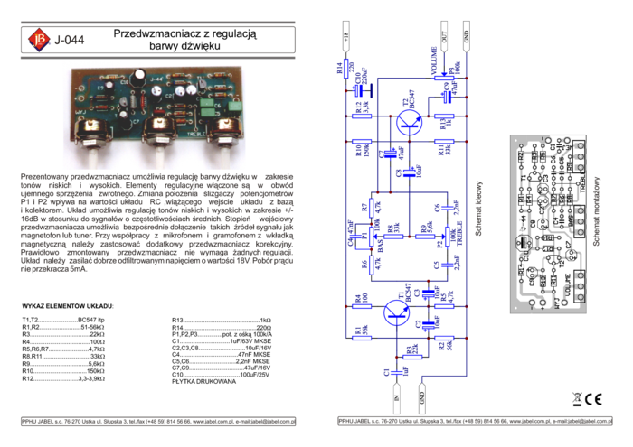 J-044 Przedwzmacniacz z regulacją barwy dźwięku (mono)
