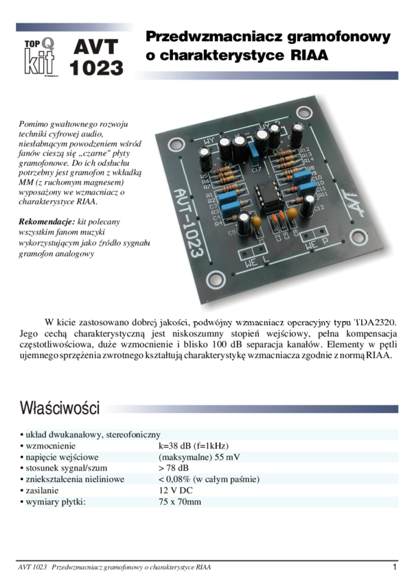 AVT1023 Przedwzmacniacz gramofonowy o charakterystyce RIAA