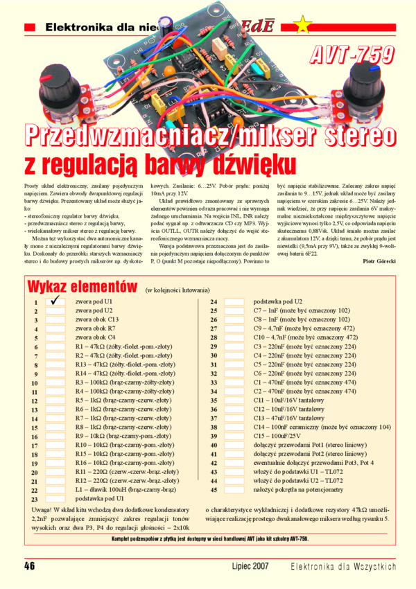 AVT2132 Przedwzmacniacz z regulacją barwy dźwięku
