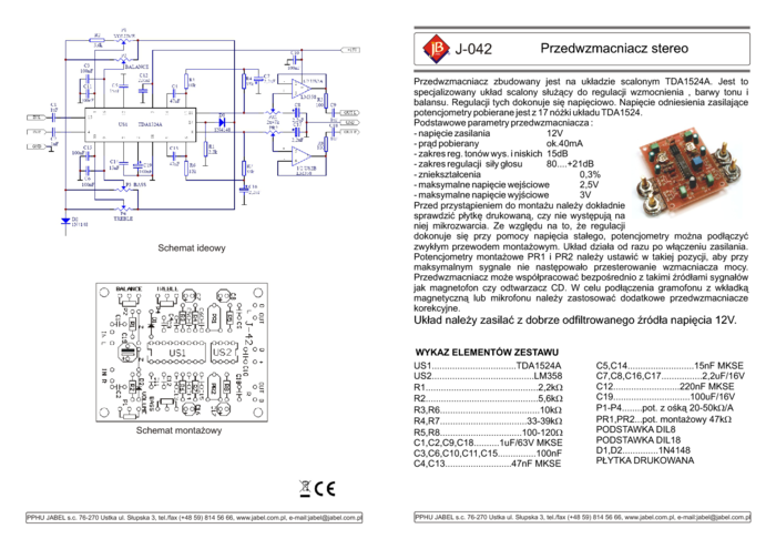 J-042 Przedwzmacniacz z regulacją siły głosu, balansu i barwy tonu (stereo)