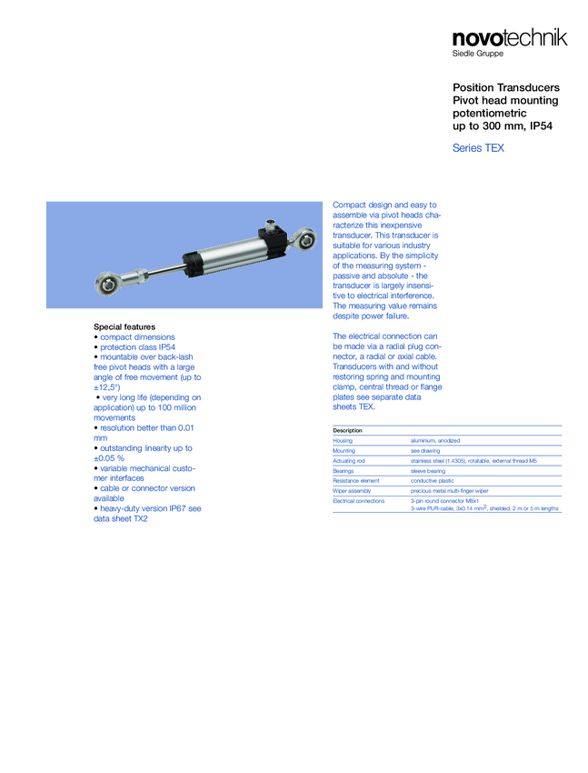 Czujnik położenia z przegubami,pomiar 300mm; rezystancja 12K ; średnica 22 mm; długość A=369mm; mechanical B=307mm Liniowość 0,05%; IP54; kabelek ( są wersje na złącze ); Electrical connection; standard cable 5m, radial output One side actuating Rod; Transducer with one-side actuatong rod M5 thread Electrical varsion - linerized (standard ) Pin 1 BN brown; Pin 3 GN green; Pin 4 ( wodzik ) WH white