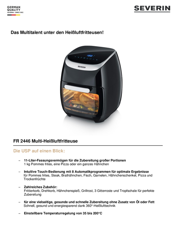 Severin FR 2446 Frytkownica 11 l 2000 W funkcja gorącego powietrza, ochrona przed przegrzaniem czarny, srebrny