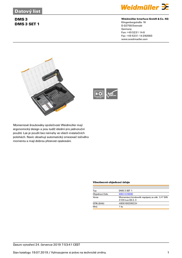 Wkrętarka przegubowa akumulatorowa Weidmüller DMS 3 SET 1 9007470000 2.4 V