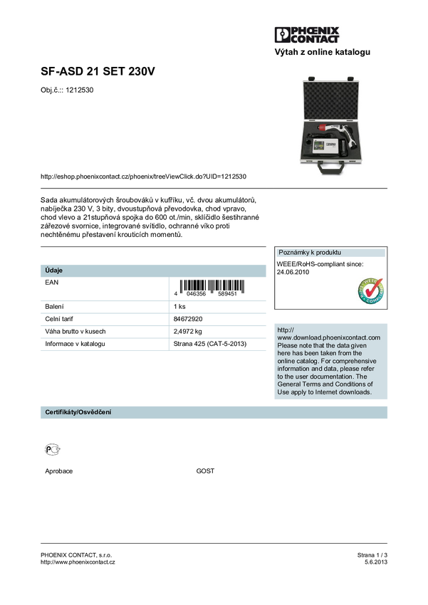 Wkrętarka przegubowa akumulatorowa Phoenix Contact SF-ASD 21 SET 1212530 zaw. 2 akumulatory, zaw. walizkę