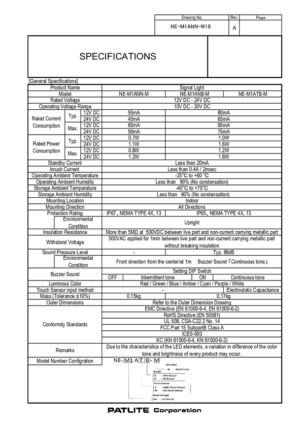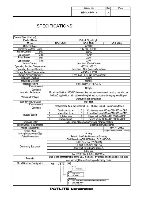 Sygnalizator świetlny Patlite NE-ILNB-M przejrzysty światło ciągłe, światło migające 24 V/DC 88 dB