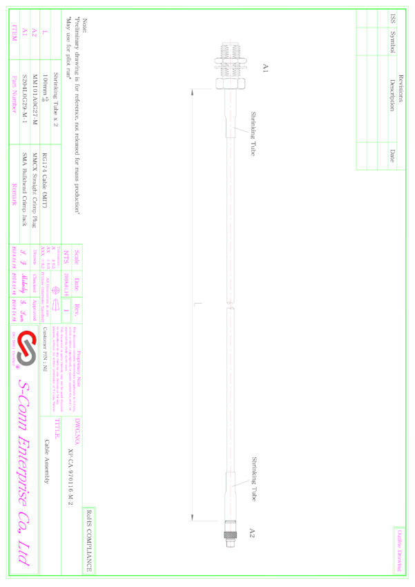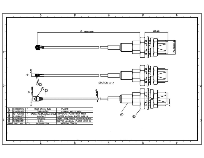 Przewód antenowy, przejściowy RG-0.81 - 105mm, zakończony , przewód o długości 10.5 cm, współpracuje z gniazdem męskim RF-IPX085-3G