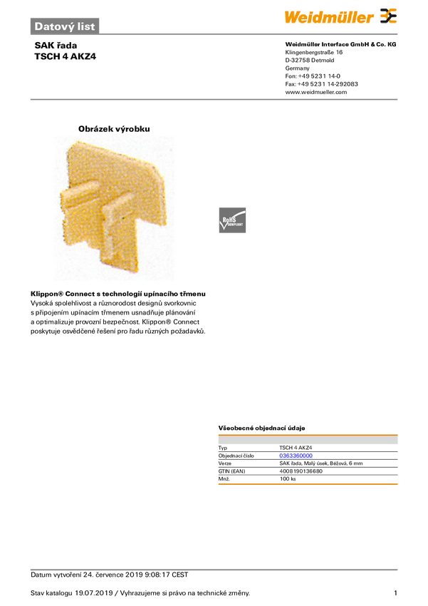 Weidmüller 0363360000 Przekładka beżowy 100 szt.
