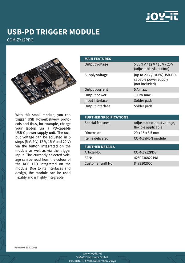 Przekładnik prądowy Joy-it COM-ZY12PDG 1 szt.