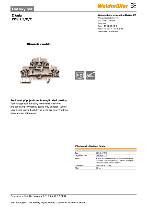 Złącze rozłączalne do przekładników Weidmüller 1690020000 sprężynowe 50 szt.