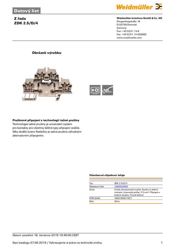 Złącze rozłączalne do przekładników Weidmüller 1690040000 sprężynowe 50 szt.