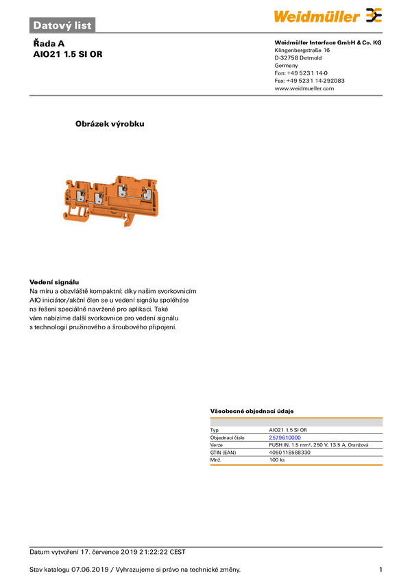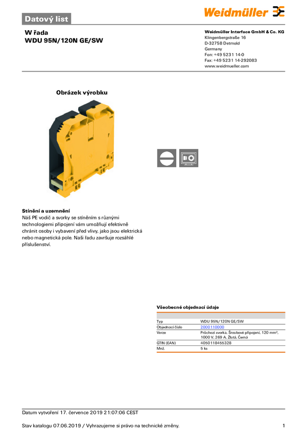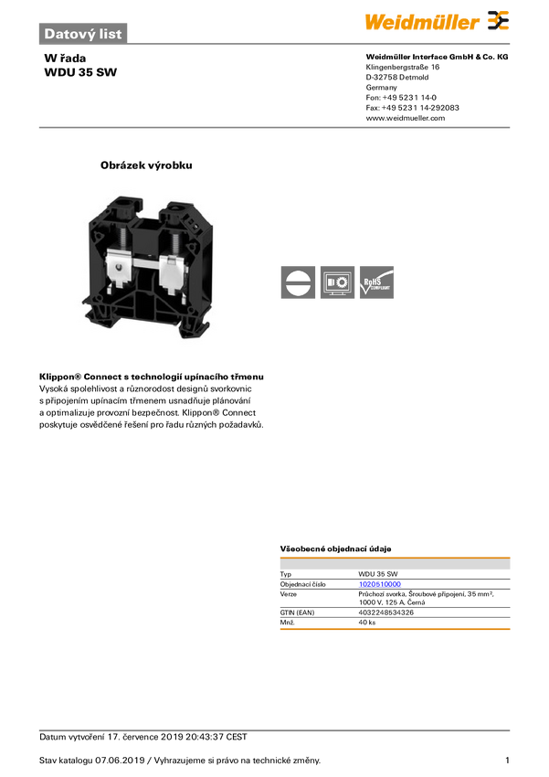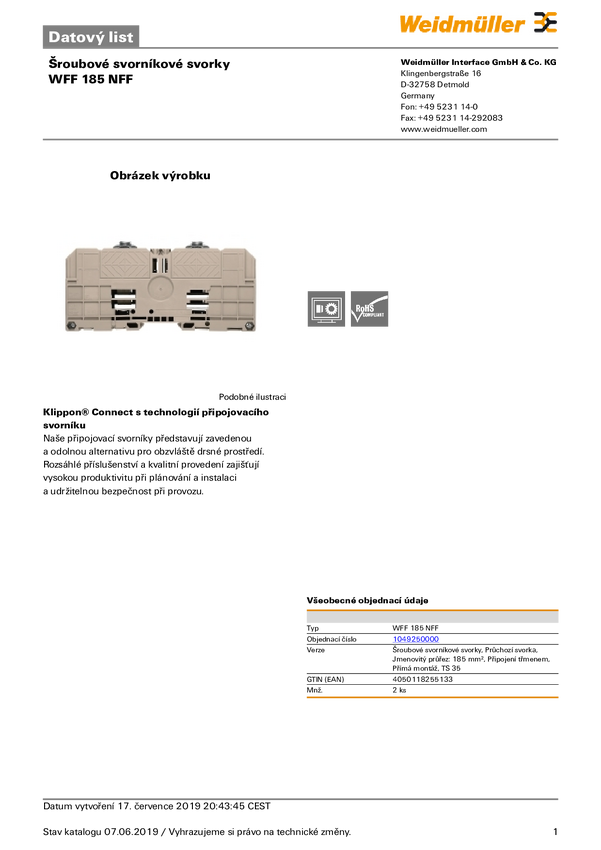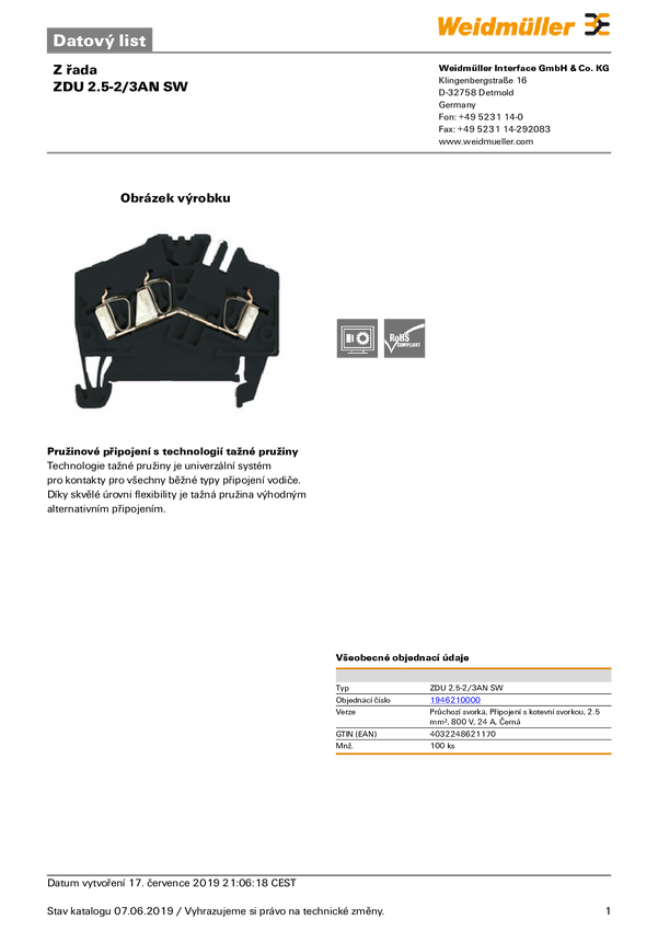 Złączka szynowa przelotowa Weidmüller 1946210000 sprężynowe 100 szt.