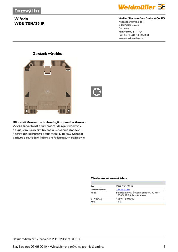 Złączka szynowa przelotowa Weidmüller 1706050000 sprężynowe 100 szt.
