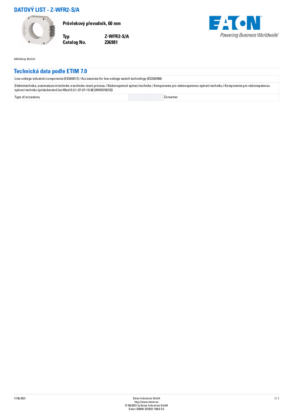 Przetwornik przelotowy Eaton Z-WFR3-S/A 1 szt.